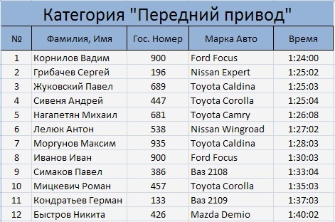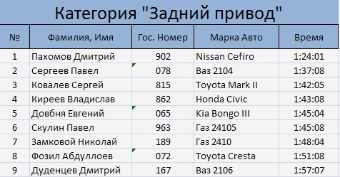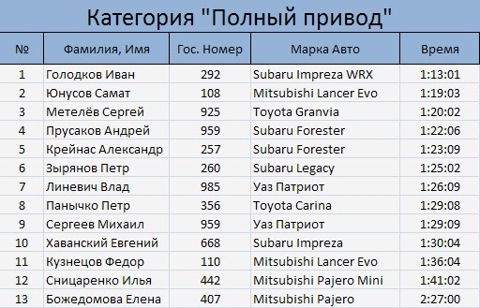 Результаты заездов в пойме Китоя 26.01.2014: