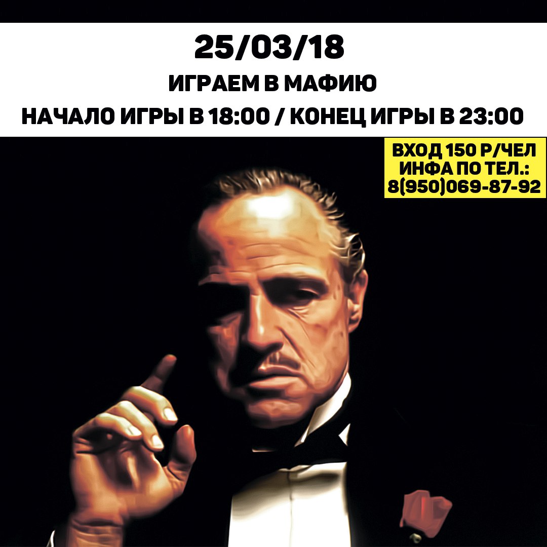 Гриль-Бар "Шампур" приглашает всех желающих поиграть в "Мафию" в это воскресенье. Начало игры в 18:00 по адресу: 12 мкр., дом 20. Запись и доп. информация по телефону: 8(950)069-87-92.