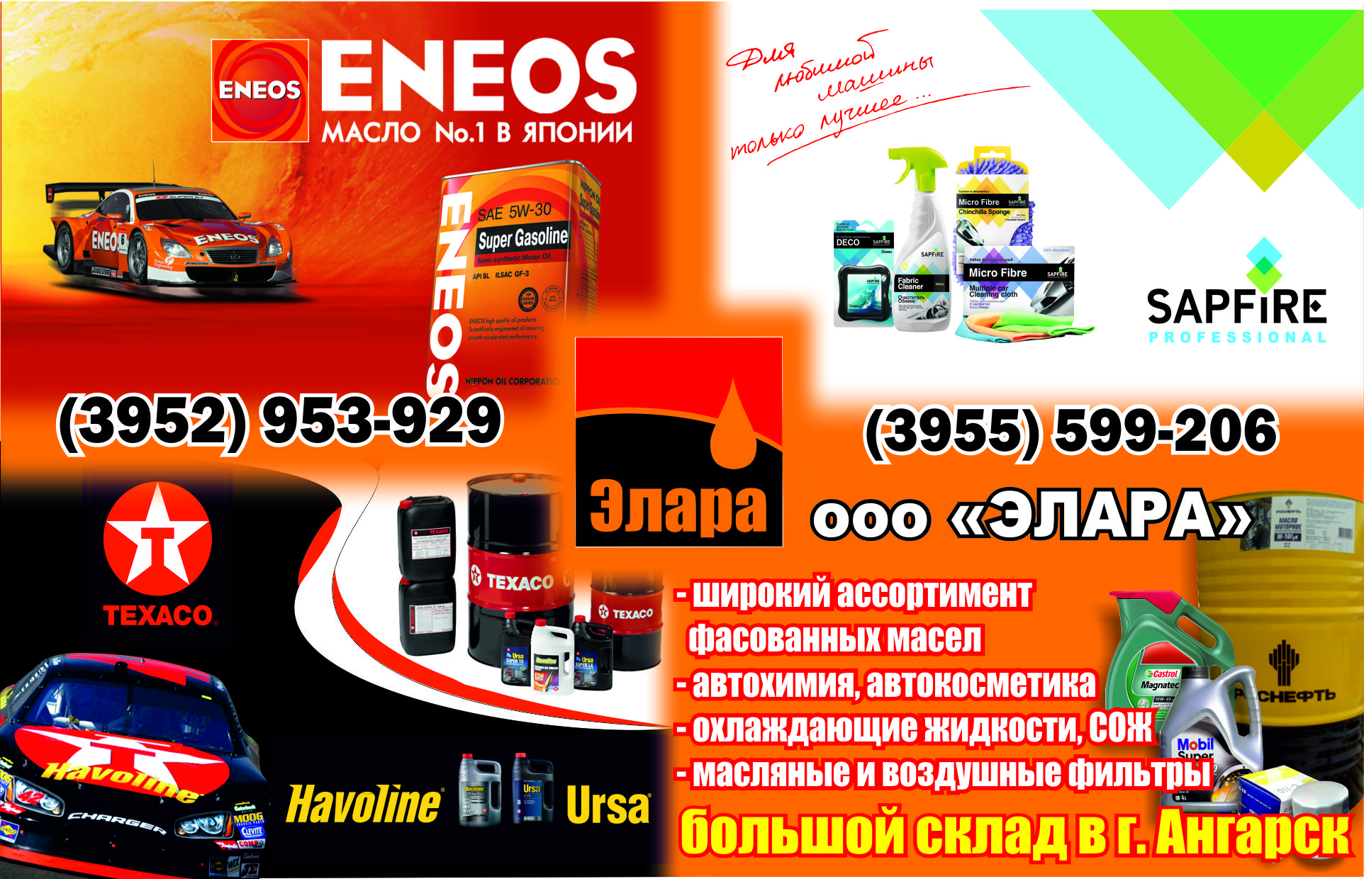 - широкий ассортимент фасованных масел в Ангарске (ENEOS, TEXACO, Havoline, Ursa)