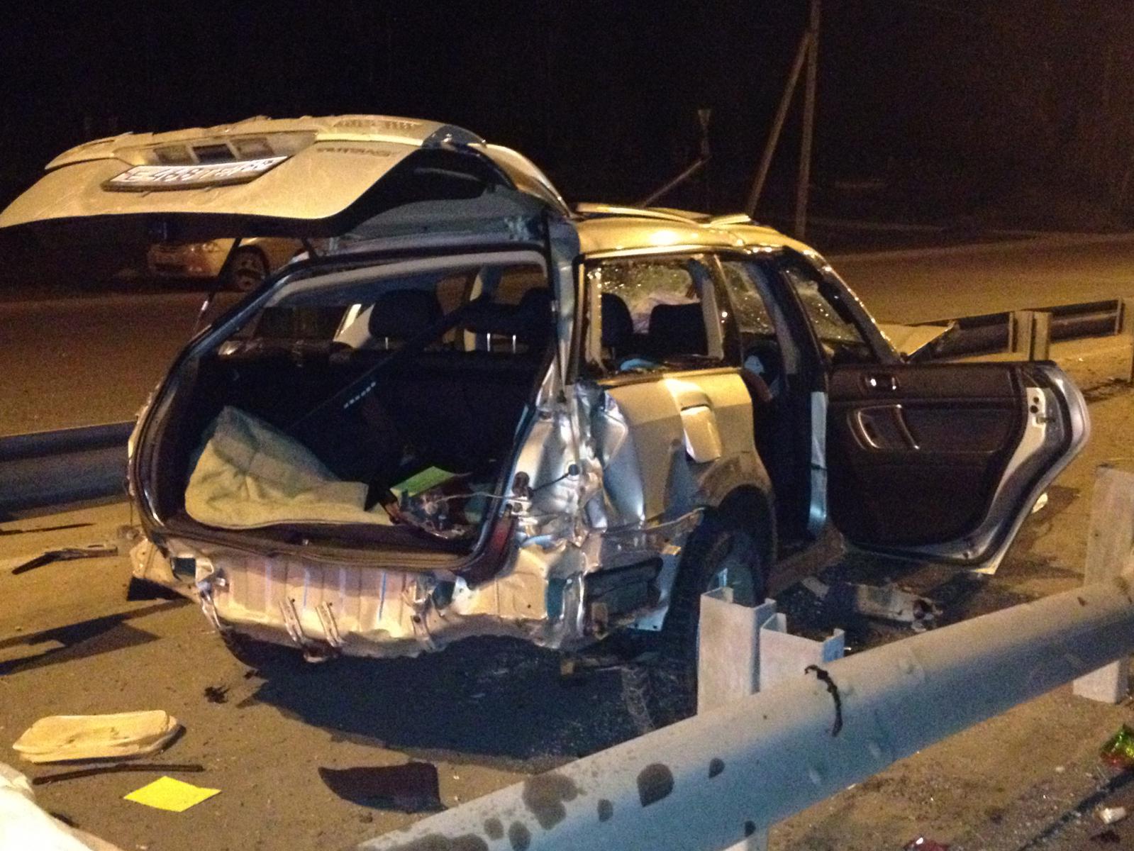 Накануне в Иркутске на объездной дороге Ново-Ленино около часа ночи автомобиль Субару Аутбек вылетел на разделительную полосу. Как сообщает очевидец на сайте MyForester.ru, удар был такой силой, что автомобиль пробил металлическое ограждение разделительной полосы, а двигатель вылетел из-под капота на полосу встречного движения, где его протаранила Тойота Королла.