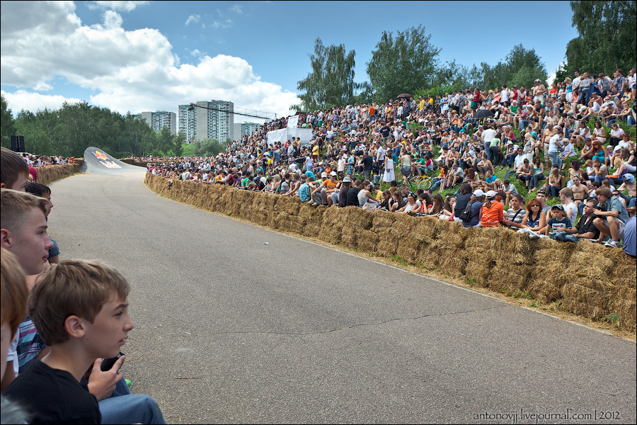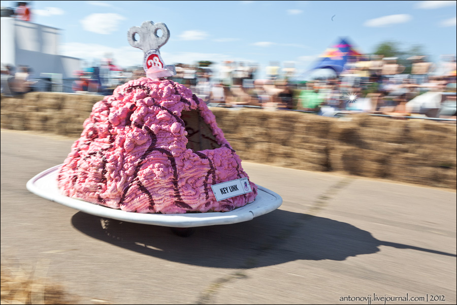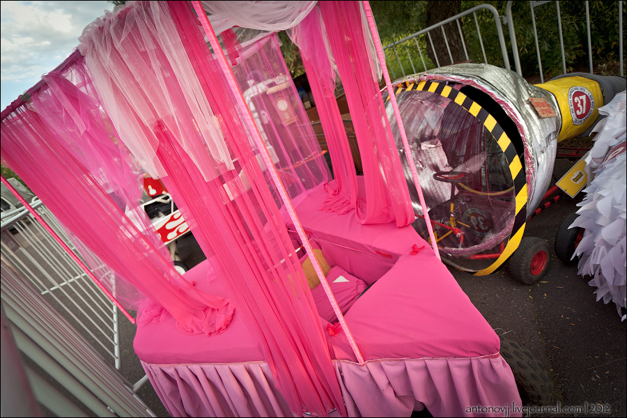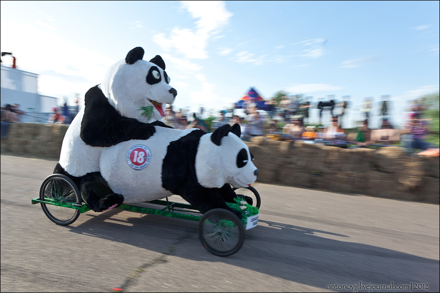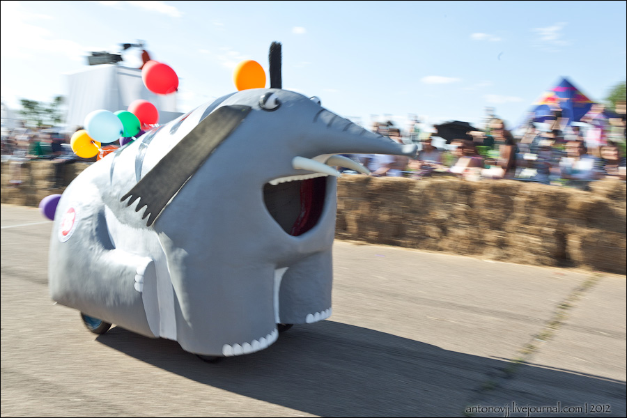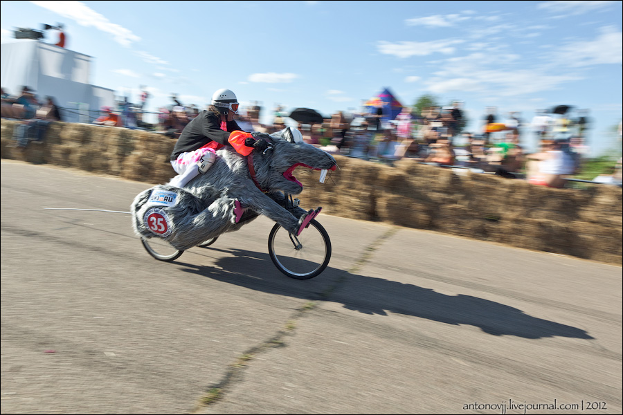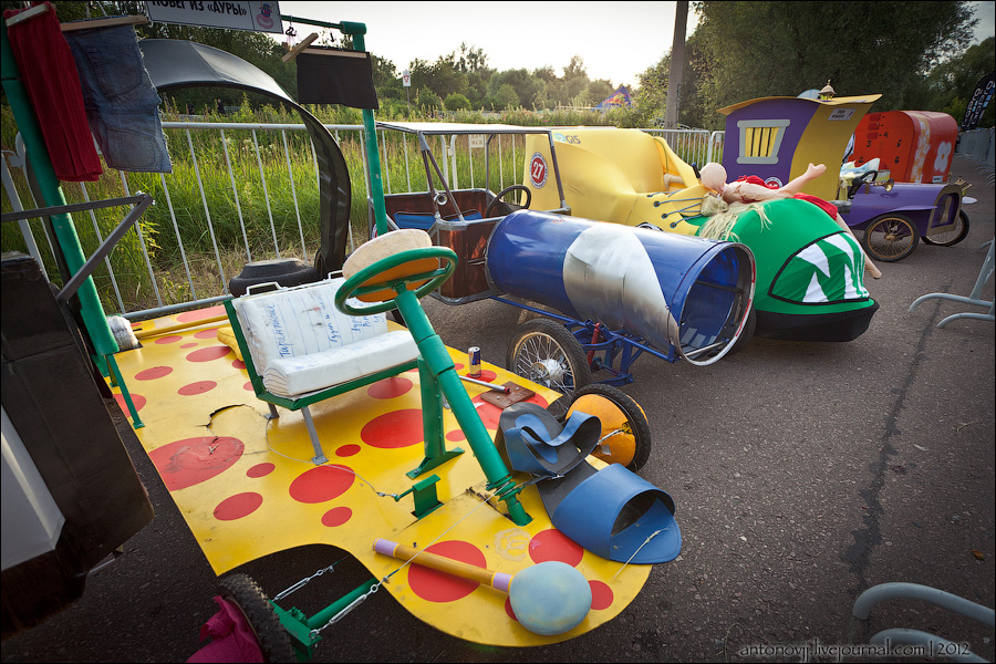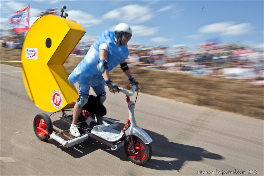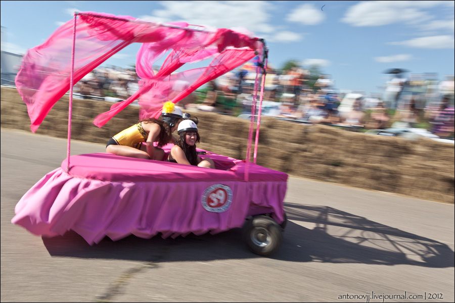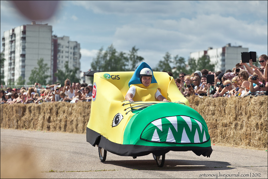 Гонки на тарантасах, это очередное массовое мероприятие от всем известного энегретика Red Bull. Нос, Печень, Яйца Вассермана, Кузькина мать, Гопдодыр, Бредни Музыкантов, Ацкая кухня, Старые Херцы на Красном перце - это только названия некоторых команд, состязавшихся в скорости и креативности в Москве. Всего было 56 участников из разных городов России.