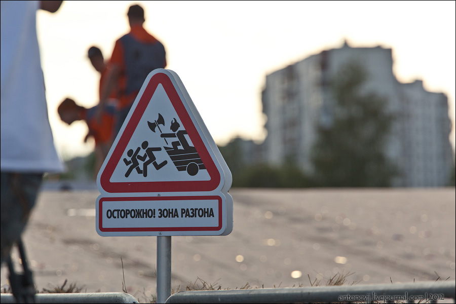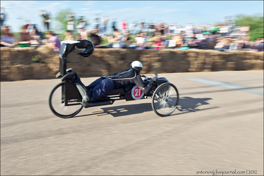 На трассе длинной 550 метров были установлены небольшие трамплины и контруклон, а вдоль отгородили соломенными снопами, если вдруг тарантас врежется, чтобы никто не повредился.