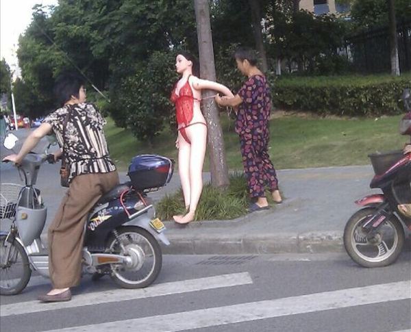 Оказывается, заставить водителей соблюдать скоростной режим можно не только за счет знаков и камер, но и при помощи… резиновой женщины. Именно к такой мере прибегла пожилая жительница Китая.