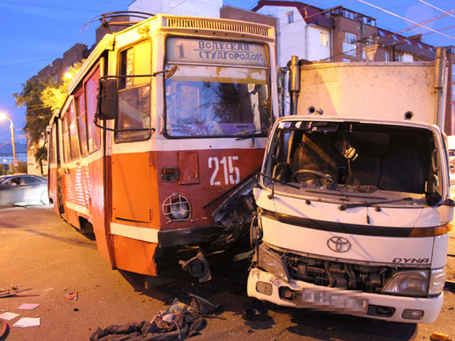 В Иркутске микрогрузовик протаранил трамвай, 5 человек пострадали (видео момента ДТП)