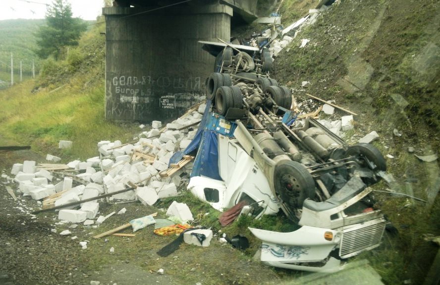 По предварительной информации, 10 сентября многотонный Фредлайнер, груженый бетонными блоками, следовал из Красноярска в Читу. На 96 км дороги в районе поселка Култук около 17 часов у автопоезда отказала тормозная система. 23-летний водитель пытался прижать тяжелую машину к ограждению, которое рухнуло вместе с грузовиком с 10-метрового обрыва прямо к железнодорожной насыпи.