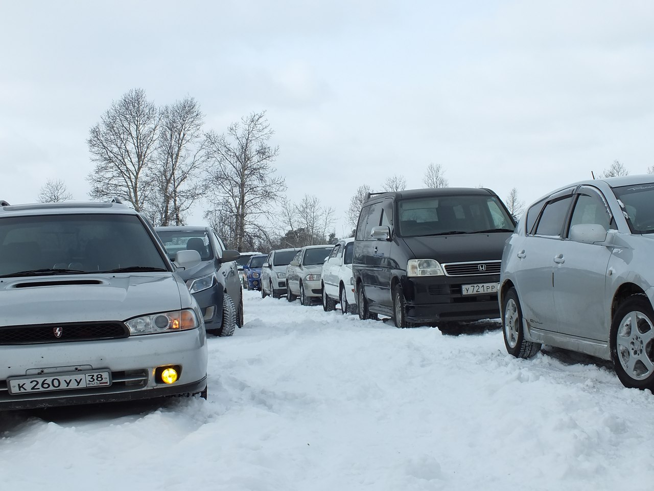Cамое неожиданное случилось потом. Когда поехали домой, решили найти поле и покататься по чистому снегу, к "Патриоту" присоединилось трое Субару форестеров. Но это еще не всё! По дороге домой у иркутской Камри Снегоджипа сорвало капот. Другие авто чудом не задело! Смотрите видео: