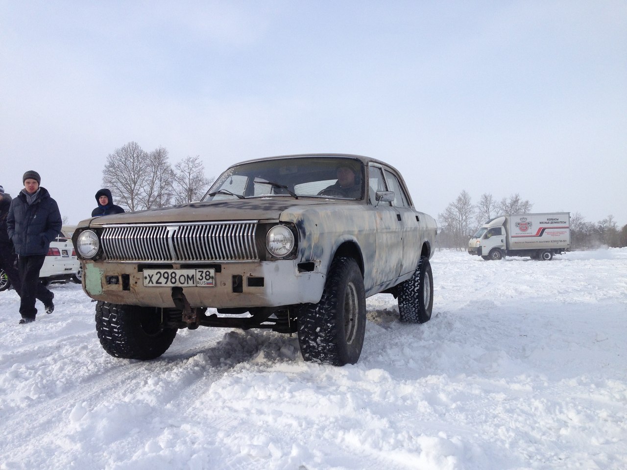 В Ангарске иркутян ожидало 30 машин. В общей сложности в пойме реки Китой собралось порядка 50 машин. Надо отдать должное организаторам, они справились на ура. Наибольшее удивление вызвало не количество машин, а одна единственная. Вот она: