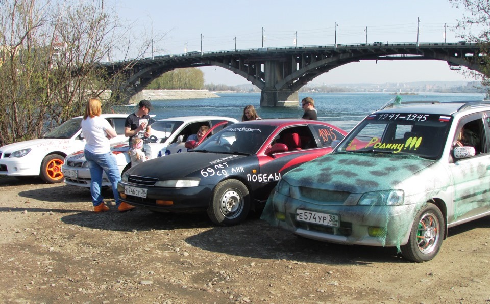 Большой и яркой колонной автолюбители поздравили ветеранов с Днём Великой Победы. 9 мая на улицах Ангарска и Иркутска было множество автомобилей, раскрашенных символами Великой Отечественной Войны. Громкое и позитивное автошествие придумали участники автосообщества DRIVE2.