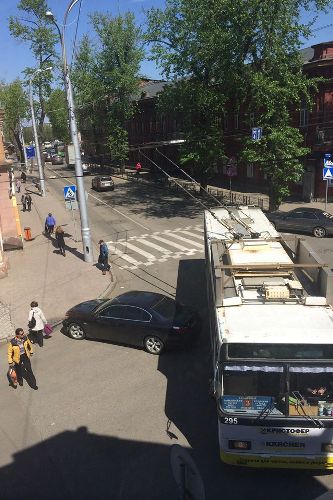 Девушка припарковала BMW посреди улицы в центре Иркутска ...и пошла за мороженным