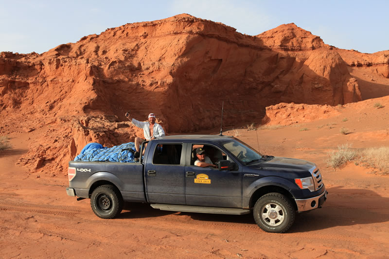 Во время движения к ущелью Хэрмэн-Цав Александр Леснянский смутил членов нашего экипажа занимательным рассказом о том, как в 2007 году он в составе команды Gobike принимал водные процедуры в теплых озерах оазиса Зулганай.