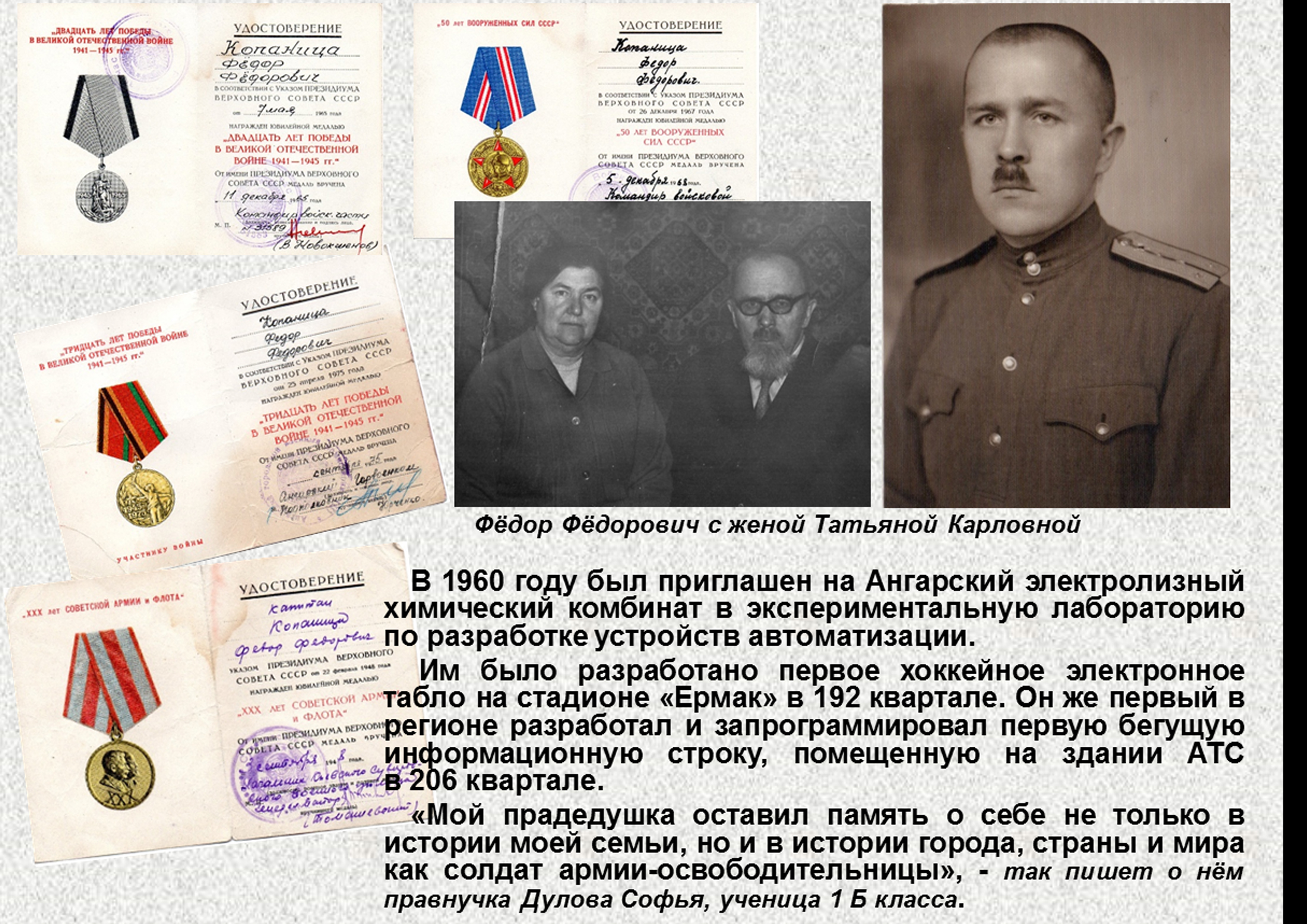 Я очень горжусь своим дедушкой, я с гордостью ношу его фамилию и храню память о нем. Тот подвиг, который совершили наши деды, должен навеки остаться в нашей памяти, такого забывать нельзя.