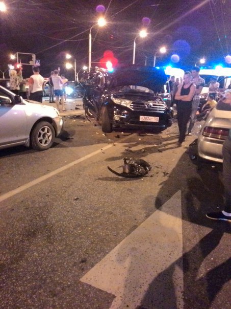 на скорости врезалась в стоящий на светофоре Toyota Highlander, из-за чего тот столкнулся с Toyota Allion и Toyota Cresta.