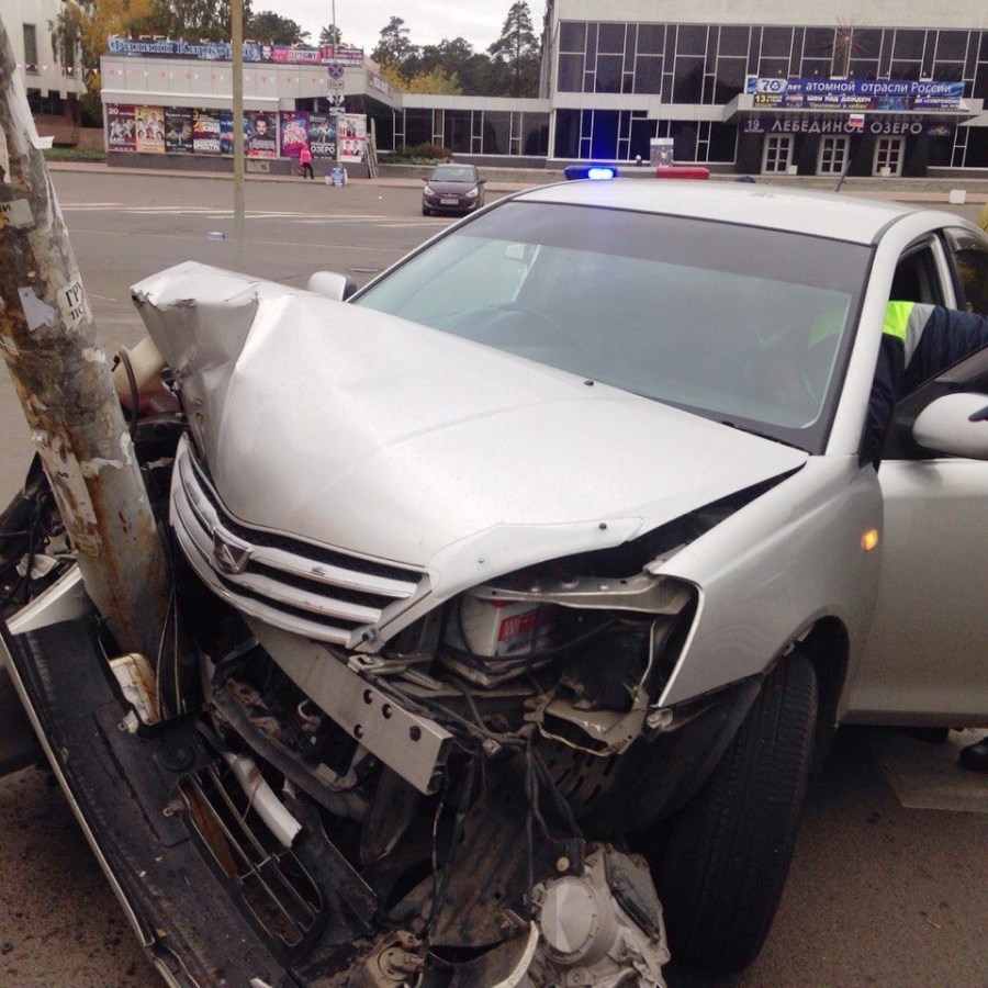 Пьяная женщина въехала в столб у Современника