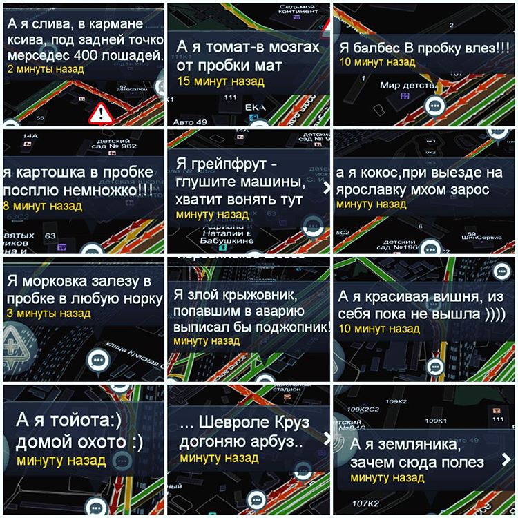 «На страничке в социальной сети “ВКонтакте” водителям предлагается охарактеризовать свое пребывание в автомобильном заторе в шутливой стихотворной форме и тем самым хоть как-то снять копящееся раздражение» — пишет moslenta. Смотрите, что из этого получилось: