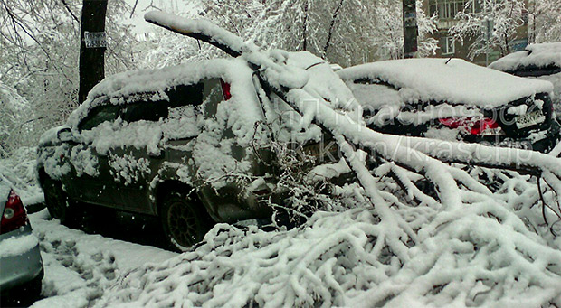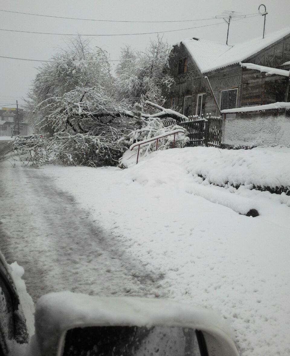 Утро 9 мая в Красноярске выдалось экстремально снежным. Во многих районах города под тяжестью выпавших осадков повалились деревья, часто повреждая припаркованные под ними машины.