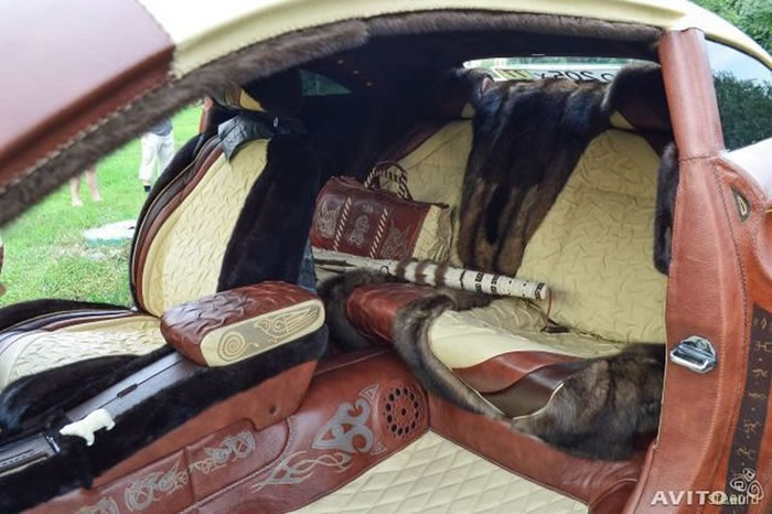 В Москве мастер Валерий Татаров по своей уникальной методике покрыл авто кожей канадского бизона, а салон оторочил мехами скандинавской и сибирской норки и баргузинского соболя. Некоторые детали интерьера в салоне украсили фигурками из бивня мамонта. Кстати, кожаный у автомобиля не только корпус, но и все пространство под капотом и в багажнике. Даже двигатель и тот в коже, а вокруг узоры из рун и кристаллов Swarovski. Правда, созданный в подарок автомобиль из кожи бизона олигарх так и не выкупил, поэтому дизайнеры выставили его на продажу — за 1 миллион 600 тысяч долларов, что в рублях составляет почти 90 миллионов. Поистине королевская роскошь. Среди потенциальных покупателей оригинального авто значились Иосиф Пригожин и Стас Пьеха, но в последний момент они передумали. Поэтому объявление о продаже машины разместили на «Авито».