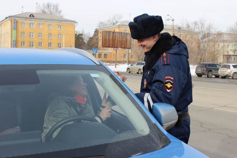- В Ангарске полицейский цветочный патруль поздравил женщин-водителей с Международным женским днём