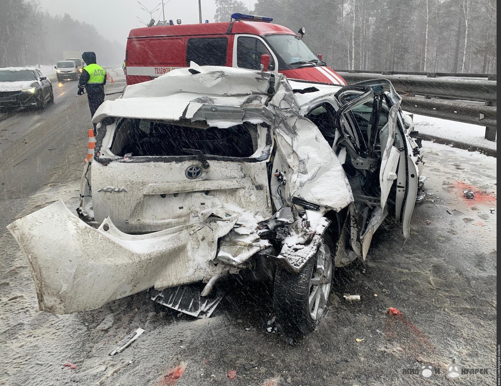 В этот же день, водитель, управляя автомашиной «Мицубиси Лансер», двигаясь по автодороге Р-255 «Сибирь», в районе 1863 километра, не обеспечил постоянный контроль за своим транспортным средством, не учел дорожные метеорологические условия, не выдержал безопасную скорость и допустил наезд на препятствие (отбойник). В это время, двигавшись позади в попутном направлении автобус «Ютонг», не обеспечил постоянного контроля за движением своего транспортного средства и допустил наезд на стоящее транспортное средство «Тойота Аква», которую от удара отбросило на стоящий автомобиль «Мицубиси Лансер». В результате ДТП травму получила пассажир автомашины «Тойота Аква», которая в последствии была госпитализирована в Ангарскую городскую больницу.