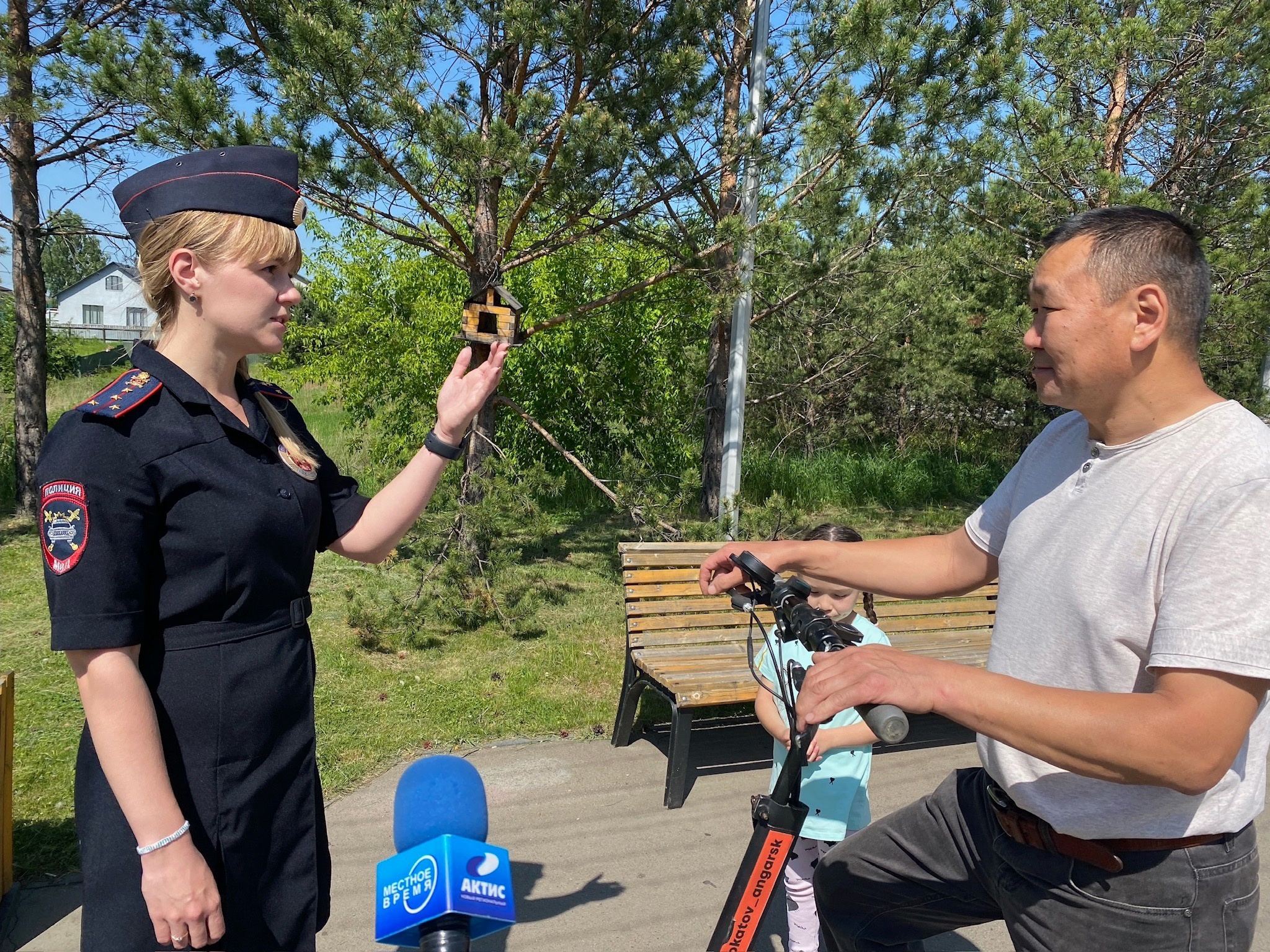 К минувшему рейду присоединились и корреспонденты телевидения. Совместно с сотрудниками ГИБДД журналисты задавали вопросы по правилам дорожного движения ангарчанам, следующим на электросамокатах. В ходе опроса выяснилось, что не все респонденты знают о запрете использования СИМ одновременно двум и более людям, а на пешеходном переходе обязательно нужно спешиться и переходить дорогу пешком.