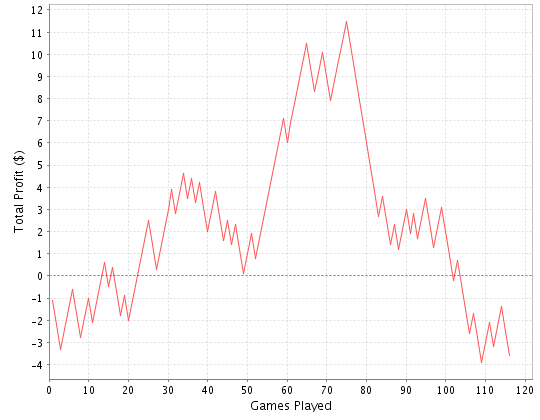 ) Ах, да, чуть не забыл самое главное - там самый низкий рейк за игру. Т.е. байин там не 1.20 как в William Hill, а 1.10. Получается 10 процентов против 20. Разница ощутимая. Сделал деп 100 долларов, из них 55 я вывел из William Hill и 45 заработал в интернете фрилансом за 2 месяца. Решил отыграть 100 ДОНов за 1 доллар и в случае плюса перейти на байин в 2 доллара. Первая неделя была хорошая, играл перед новым годом. Был в плюсе и уже хотел идти на байн выше. Но сел играть 1 января и слил весь плюс, почувствовал что началась черная полоса. Длится она по сей день.