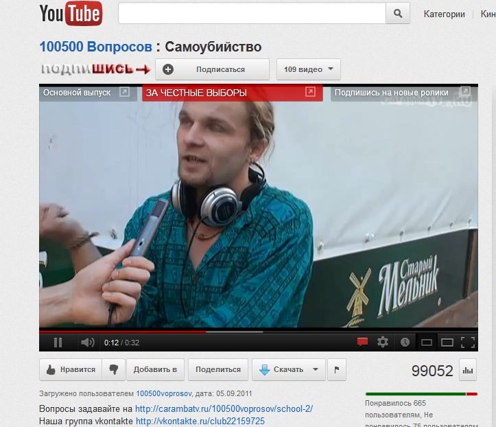 Руководитель Роспотребнадзора Геннадий Онищенко заявил "Интерфаксу", что с первого ноября его ведомство потребовало запретить 22 ролика, размещенных на YouTube. Некоторые из них содержали сцены самоубийств. Но вопроса о закрытии видеохостинга целиком Роспотребнадзор не ставил, заверил Онищенко. Внесение адреса youtube.com в реестр он назвал "провокацией".
