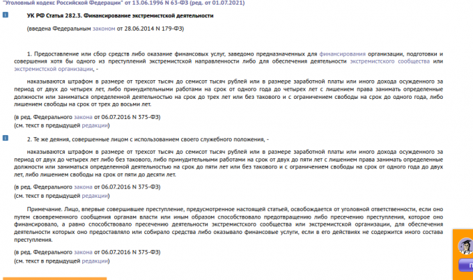 УК РФ Статья 282.3. Финансирование экстремистской деятельности