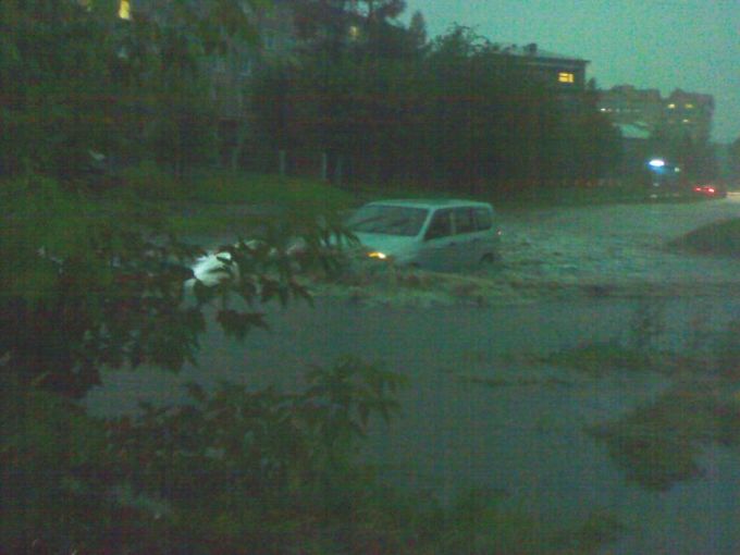 Как вам дождик? В момент начала, я оказался в ТЦ Трапеза 17 мкр. Люди оказавшиеся внутри, сидели и, странное дело, выходить никто нехотел. Пробыв там минут 20, услышал распоряжение, видимо администратора : "Пусть выходят, выгоняйте!". Хорошее отношение к своему покупателю)). В помещение со всех трех входов шла вода (помещение подвальное). Решив не дожидаться когда действительно начнут выставлять вышел на улицу. 40 лет Победы, не узнать. ( и это ещё не всё ) |