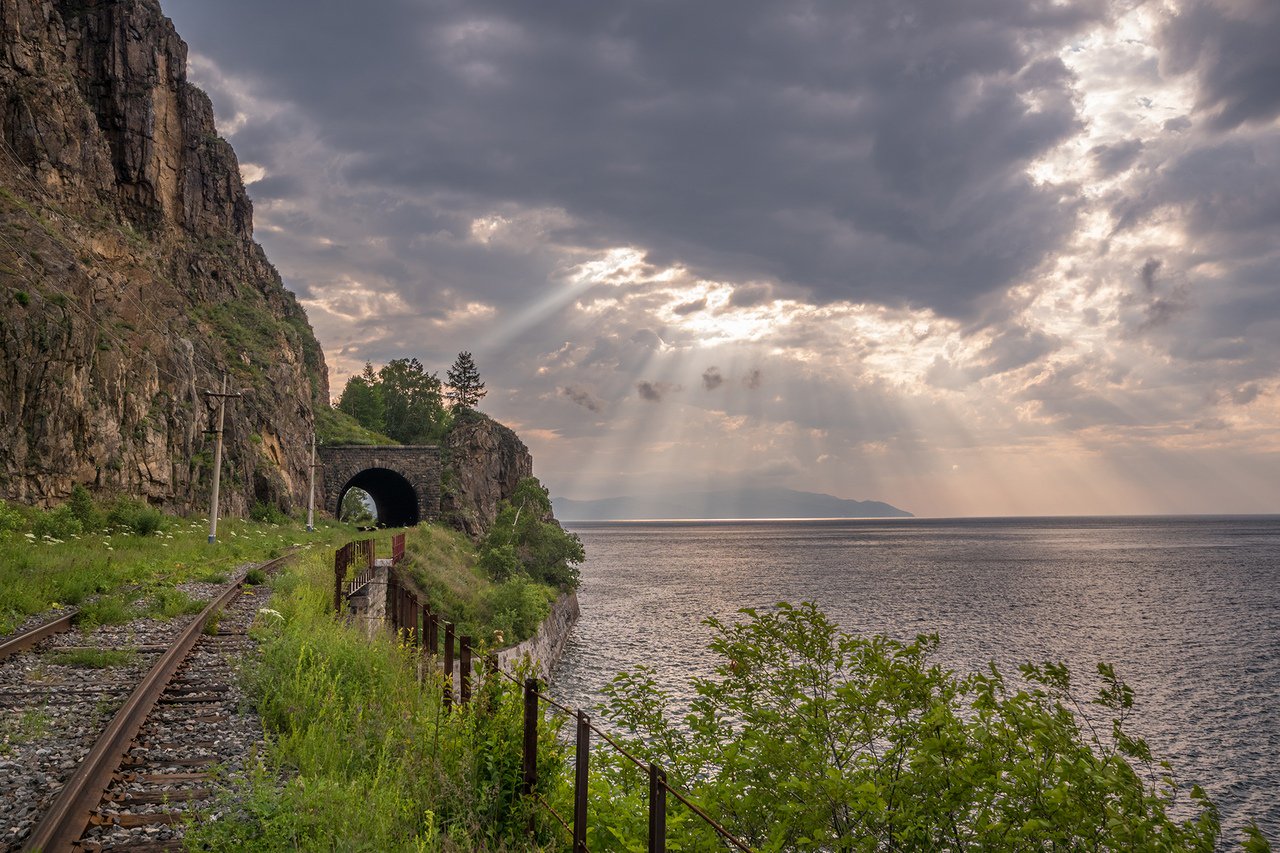 В этот момент беседы неожиданно прекратился дождь, и Сергей с Ириной решили напоследок прогуляться вдвоём по шпалам. Они прошли, держась за руки и негромко беседуя, около километра до небольшой одинокой острой скалы над крутым обрывом. Скала когда-то была частью единого склона к Озеру, но данный склон мешал прокладке железнодорожного полотна, и строителям Дороги ничего не оставалось делать как стереть с ландшафта местности его мешающую часть. Парочка села на рельсы прямо возле "зуба" и закурила, выпуская дым в сторону Байкала. За их спинами, на другой скале, виднелась давно поблекшая надпись краской "Как молоды мы были..." с каким-то семьдесят лохматым годом под ней и несколькими именами. Иринка смотрела на Сергея, тот молчал, глядя в какую-то точку посреди серой водной глади.