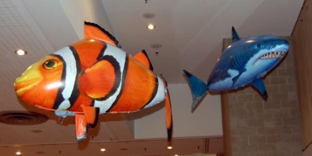 Хитом осени 2011 года стала игрушка, которая не оставит равнодушным ни одного ребенка. Речь идет о рыбке, известной как Air Swimmers. Под потолком комнаты, плавно и реалистично качая хвостом, парит наполненный гелием шар в форме рыбки. Игрушка выпускается в двух вариантах:рыба-клоун, либо акула из детского мультфильма про Немо. ( и это ещё не всё ) |