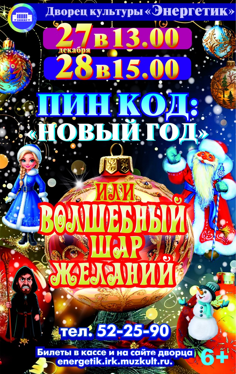 Дворец культуры "Энергетик" приглашает на новогоднее представление «ПИН КОД: «Новый год» или волшебный шар желаний» Наступает самое волшебное время года… Но что, если Новый год вдруг исчезнет? ( и это ещё не всё ) |