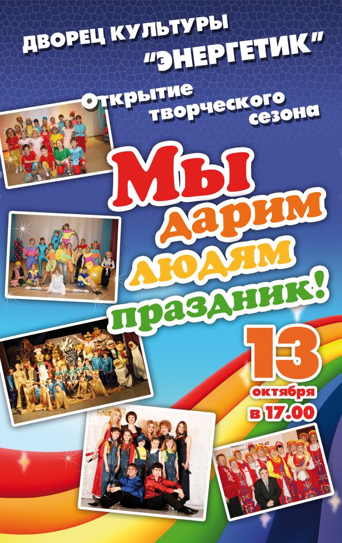 13 октября в 17-00, во дворце культуры "Энергетик" состоится открытие творческого сезона "Мы дарим людям праздник" |