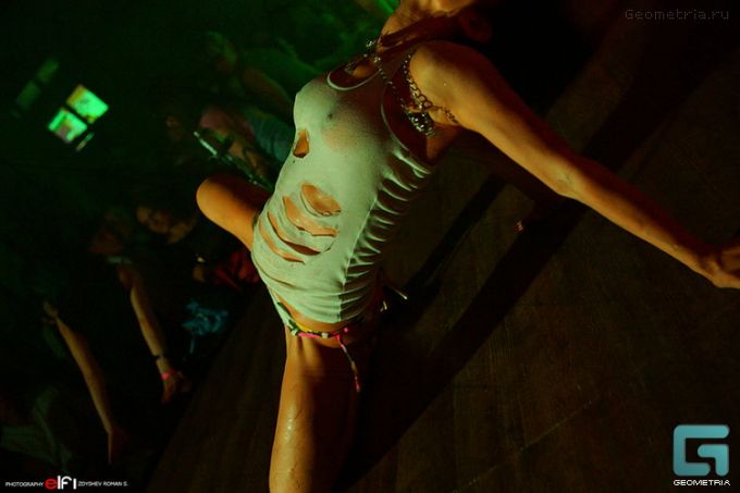 - Конкурс мокрых маек! Четыре участницы — один приз! ДЕСЯТЬ ТЫЩ РУБЛЕЙ! - объявил Кюрс, и под музыку, по коридорчику к сцене выходят четыре далеко не целомудренно одетые девушки.