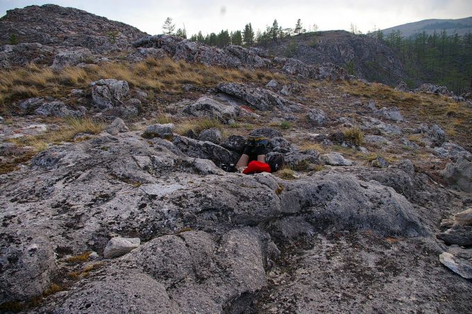 перевалив за гору в пред-предыдушем посте, мы снова долго катились вниз, и прикатились в строящуюся турбазу близ с рекой Анга.