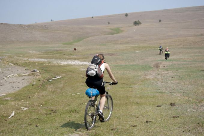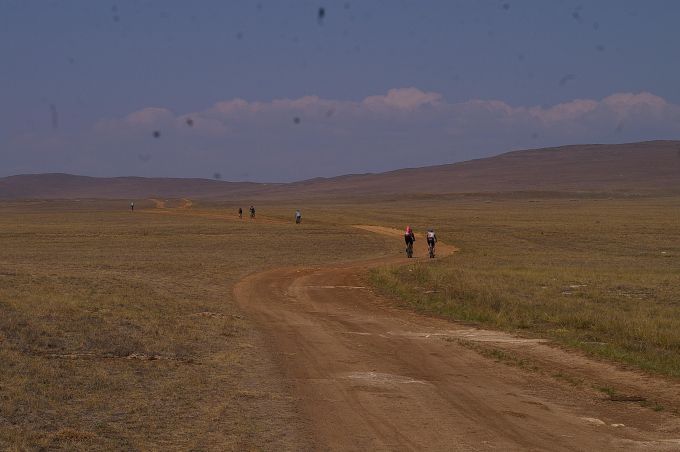Почему-то принято считать, что есть некое противопоставление мотобайкеров велобайкерам. Ну может, те, что по городу гоняют, действительно какую-то свою особость ощущают. Но в степях Тажеранских никакого негатива друг ко другу возникнуть не могло, ибо путешественник всегда поймет другого путешественника, ведь вело, мото, авто или лодка - это лишь способ.![]()