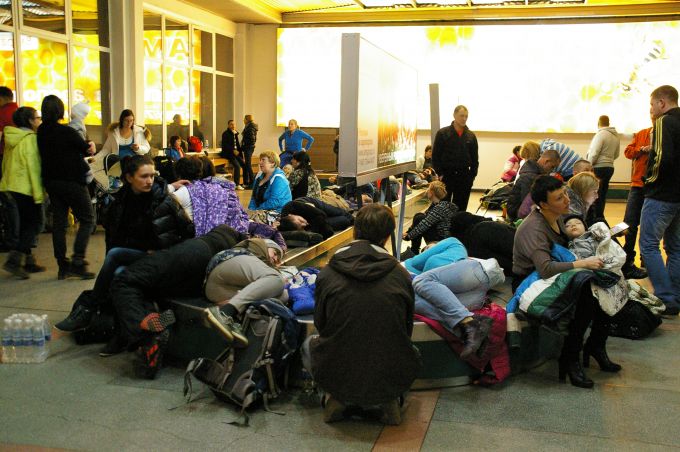 Пока страждущих туристов не разместили в гостинице, народ спал на карачках, так как сидений на всех катастрофически не хватало