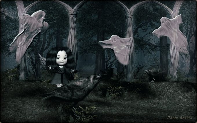 Девочка опаздывала домой к ужину. Поэтому, чтобы сократить дорогу, она решила пройти через кладбище. Но, о ужас, до чего ей было страшно! Как вдруг она заметила впереди себя ещё одну девочку и поспешила присоединиться к ней.