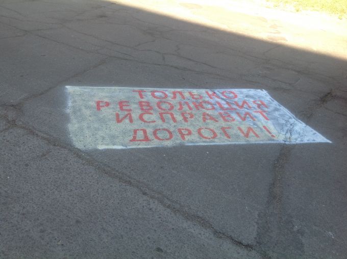 Кроме того, информация, содержащаяся в лозунгах на асфальте, порочит городских чиновников. Якобы, наши ангарские дороги не в состоянии изменить ничего, кроме революции.