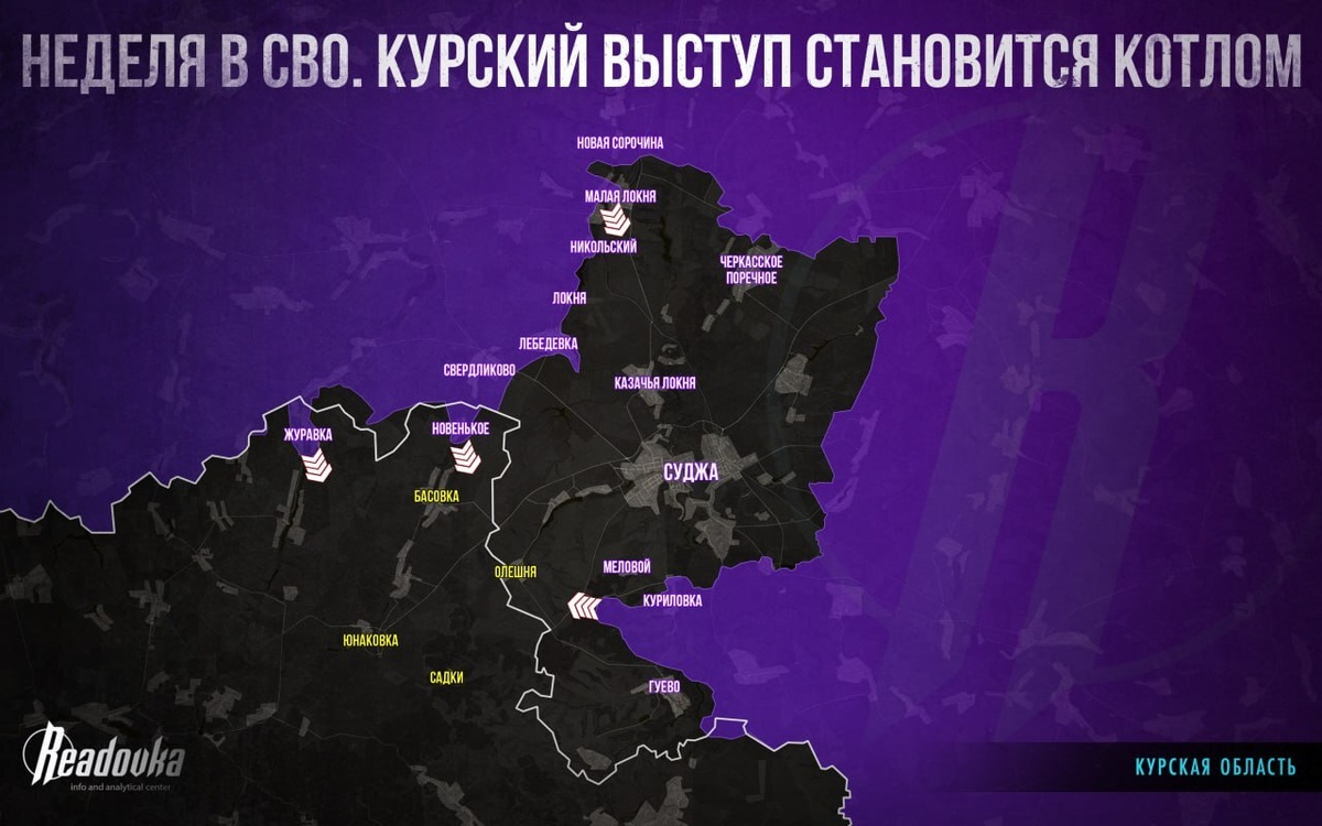 ВСУ, захватившие приграничный плацдарм в Курской области, пытались продвинуться в трёх направлениях — на восток от Суджи в направлении села Белица и соседнего населённого пункта Гирьи, на север в направлении города Льгова и на северо-запад в направлении города Коренево на дороге к Рыльску.