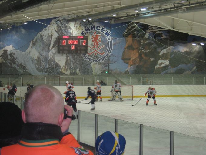 В тот же вечер «Енисей» играл против....а не важно против кого играла любимая команда красноярцев. Там любят хоккей с мячом, канадский им еще не привит, так что билеты на матч можно было купить у нескольких человек, открыто торговавших ими у входа в «Первомайский». Мы легко ликвидировали дефицит и полным составом попали на нашу трибуну без каких-либо проволочек.