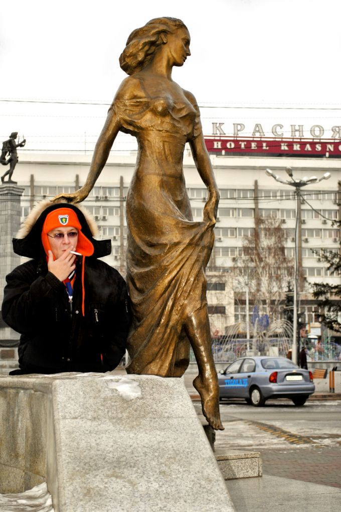 Очень понравилась прогулка — легко и непринужденно мы болтались по улицам, глазели на народ и достопримечательности, дурачились и фотографировались. Люди в Красноярске очень дружелюбные и обходительные - прохожие, снисходительно улыбаясь, смотрели на наше чудачество.