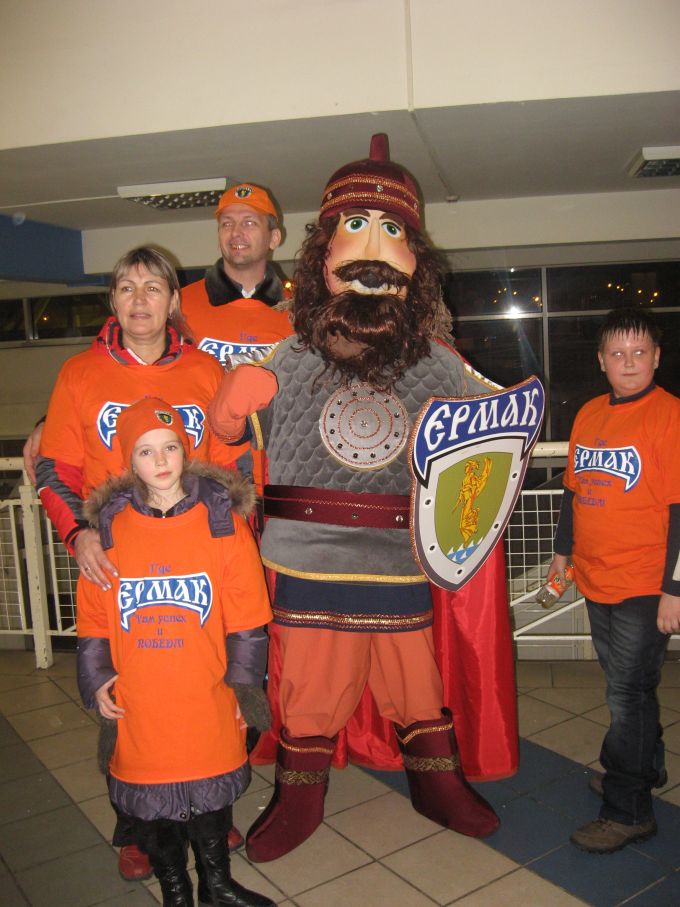 Ну, об открытии матча особо сказать нечего — назвали составы команд, стартовые пятерки, гимн Российской Федерации — и вперед. Это вам не наши шоу-открытия перед каждой игрой! О самом матче уже писали на сайте, подчеркну лишь, что болели сумасшедше, до срыва глоток, даже местный аниматор, носивший костюм «Ермака», жаловался потом, что с голосом теперь проблемы, но был искренне доволен!