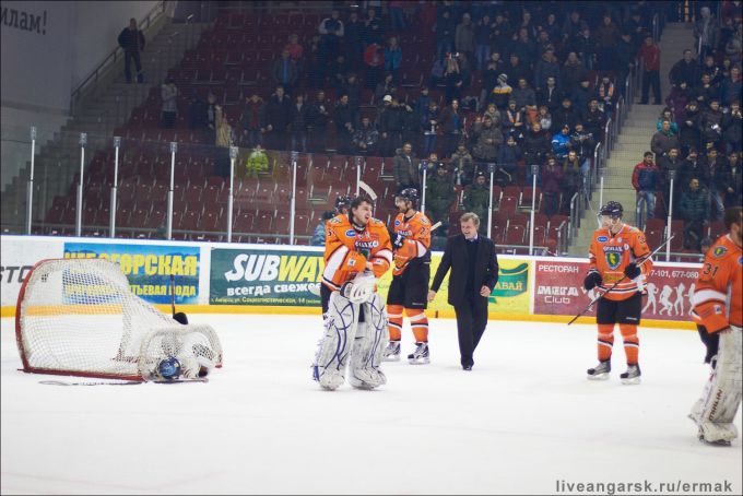 Замечательной точкой этой напряженной серии была награда Андрею Гаврилову - памятная табличка "Лучший вратарь февраля" от руководства ВХЛ, которую ему торжественно, под овации многотысячной братии болельщиков, вручил исполнительный директор ХК "Ермак", Александр Георгиевич Быков. Так держать, Андрюха!