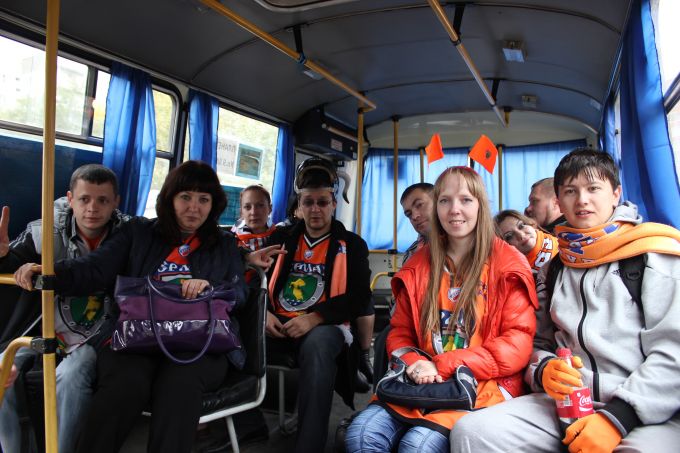 В планах на 2 октября у нас была увеселительная прогулка по Красноярску, часть которой мне предполагалось пропустить - было необходимо выкупить билеты в кассах «Арены Сокол», а также собрать всю нашу оранжевую братию перед стадионом за полтора часа до матча. Но мои однополчане решили меня не бросать, поэтому мы все время были вместе. Это было нечто!