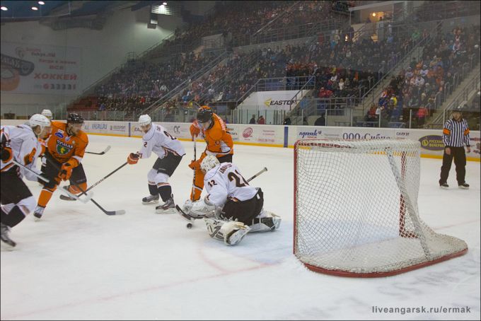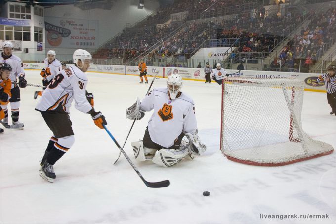 Состоялся очередной матч ангарского "Ермака". Отзвучал гимн и первое вбрасывание остается за гостями. Но не тут-то было, первая же смена ударного звена зажигает фонарь за воротами гостей. Коньков, запутав своего визави у лицевого борта, отбрасывает шайбу на Максима Юшкова. Трибуны визжат от восторга, а голеодор делает вид, что не слышит их.