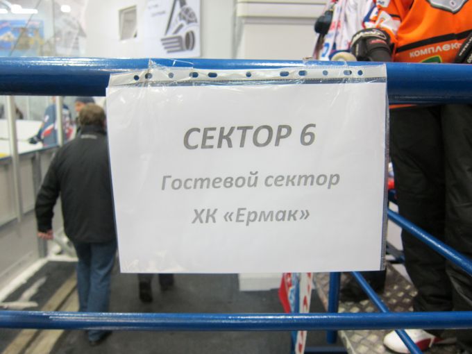 Висит табличка: «Спецобслуживание для болельщиков Ермака».