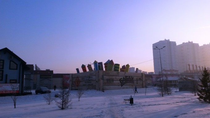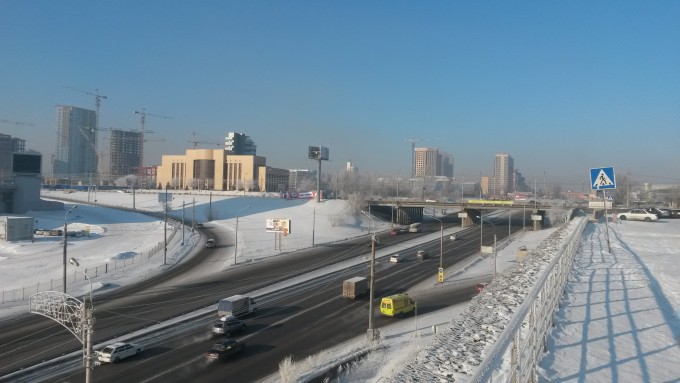 День второй. К морозцу добавился довольно крепкий запах сгоревшего угля с местных ТЭЦ. Но прогулке по городу это не помешало, начал ее с посещения расположенного недалеко от гостиницы ТЦ "Июнь". Ничего особенного. По размерам примерно в 4-5 раз больше нашего "Фестиваля", суть примерно та же. Построен он непосредственно на берегу Енисея, залежалый товар можно сбрасывать прямо в воду