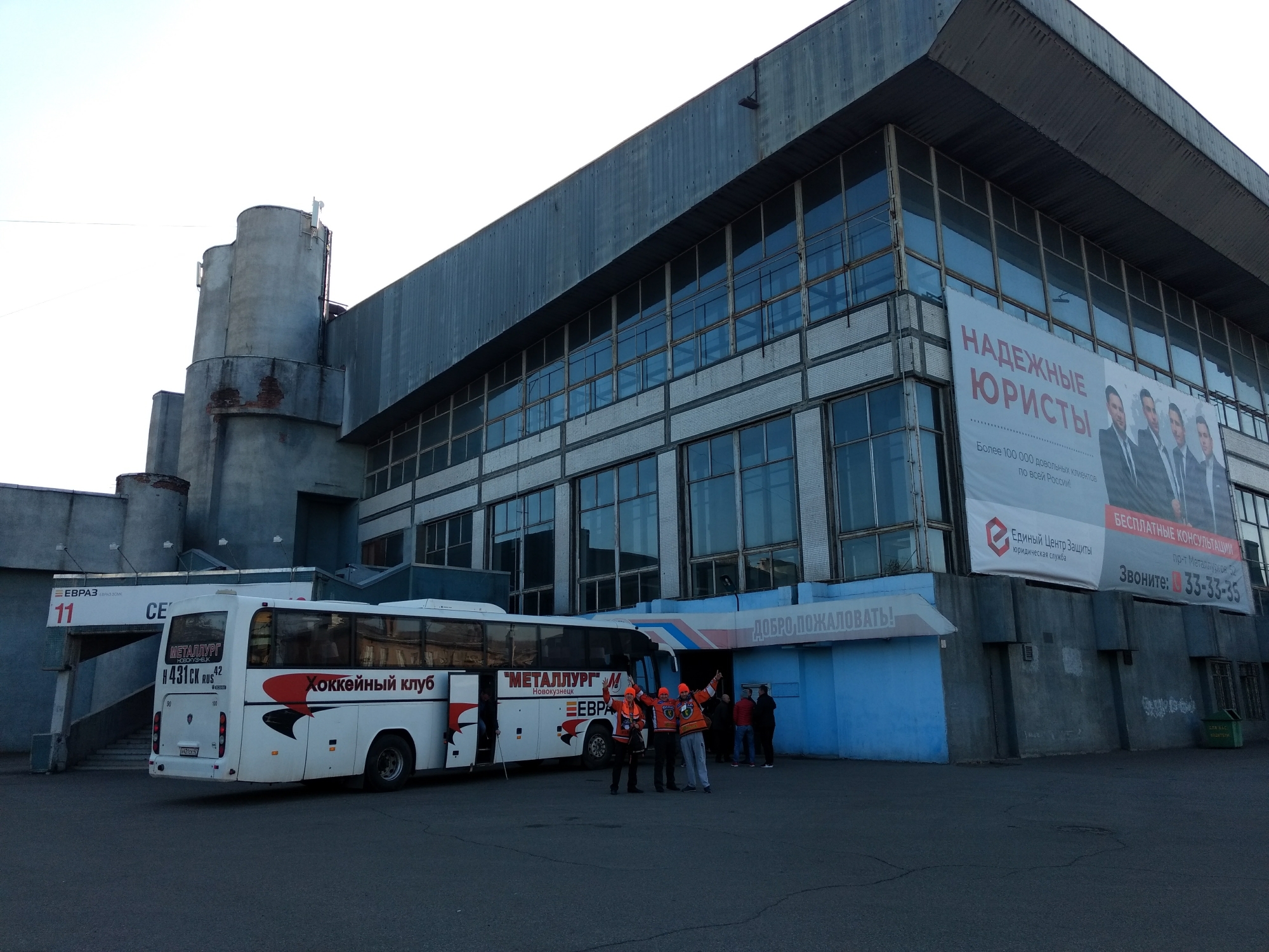 Вся поездка была в очень жестких временных рамках. В 10 утра приехали на стадион, погрузили барабаны, флаг и поехали. Аэропорт, регистрация, не прошло и получаса как мы уже были в самолете. Около двух часов полета, все "развлекали" себя как могли: кто-то смотрел фильмы, кто-то читал, кто-то спал, кто-то пялился на шикарный вид в иллюминаторе. А потом снова аэропорт, разгрузка-погрузка, автобус, стадион, но уже не наш, а "Металлурга".