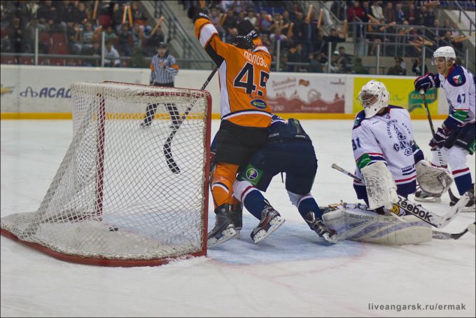 Ермак забивает 1-0Завершился матч "Ермак"-"Саров", первый в этой домашней серии. Первый период начался довольно активно, в том числе и с нарушений со стороны наших соперников. Но ничего не помешало на второй же минуте ангарскому "Ермаку" повести в счете. С подачи Евгения Чемерилова красиво забил Александр Швецов.