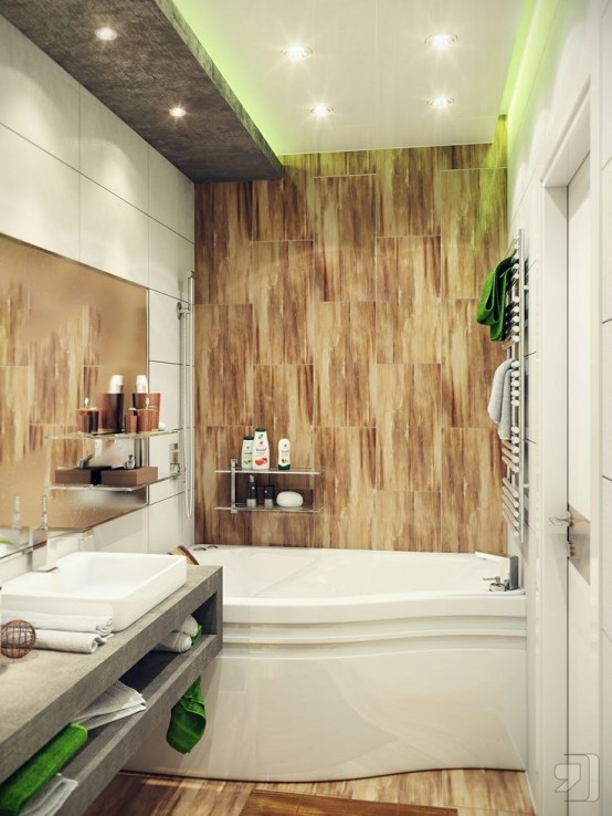4. Любому дорогому материалу можно отыскать равноценную замену, но значительно дешевле по цене. Стекло заменить пластиком, вместо натурального камня – керамический гранит, вместо металлической ванны – акриловая, а мозаике не уступит по красоте плитка с рельефом.