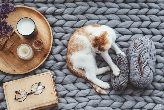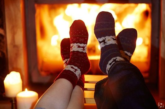 Даже если у вас нет камина, защиту от холода должны обеспечивать шерстяные и меховые вещи: коврики, пледы, вязаные аксессуары. На кухне при этом что-нибудь должно кипеть, шкворчать и булькать — это звуки хюгге, возвещающие о существовании дополнительного обогрева. Хорошо бы ещё свечи: в отсутствие печки или камина нужен хоть какой-то живой огонь.